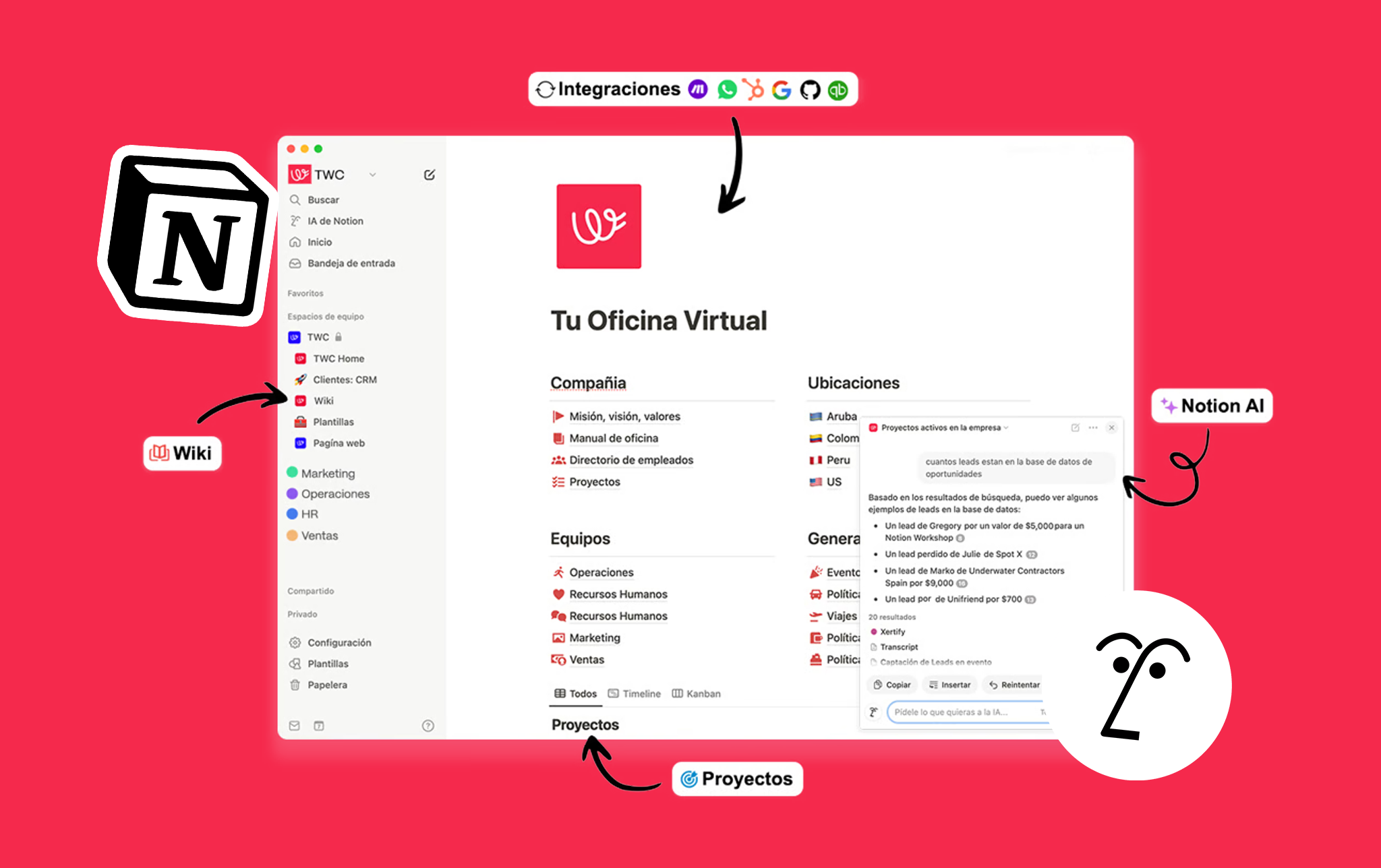 Impulsa tu operación con IA integrada en Notion para generar contenido, resumir información y tomar decisiones más rápido.